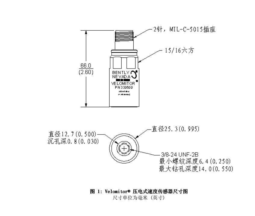 美國Bently本特利330500速度計(jì)(Velomitor)壓電式速度傳感器